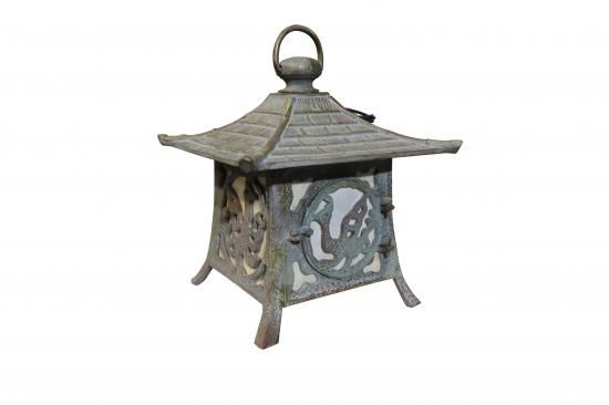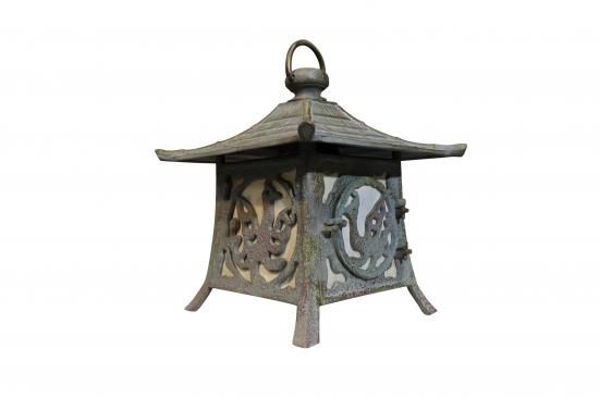 吊り灯篭 銅緑色 春日型ツル レトロの照明器具です。