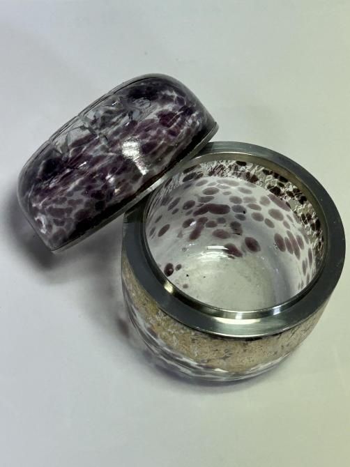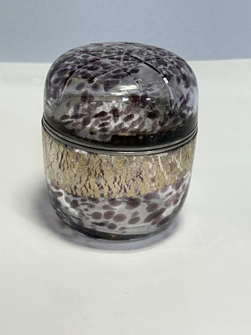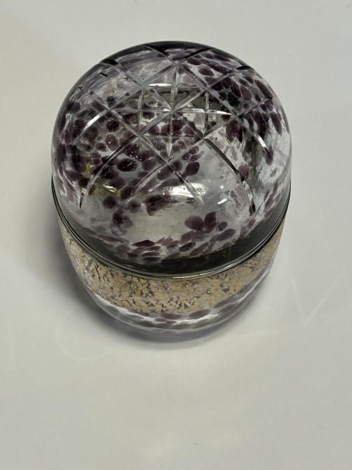 銀彩金色葡萄色の斑点が蓋のカットが綺麗にガラスらしく見えます。