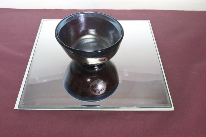 手吹きガラス耐熱ガラス銀彩に漆塗り丸紋を足らいました。